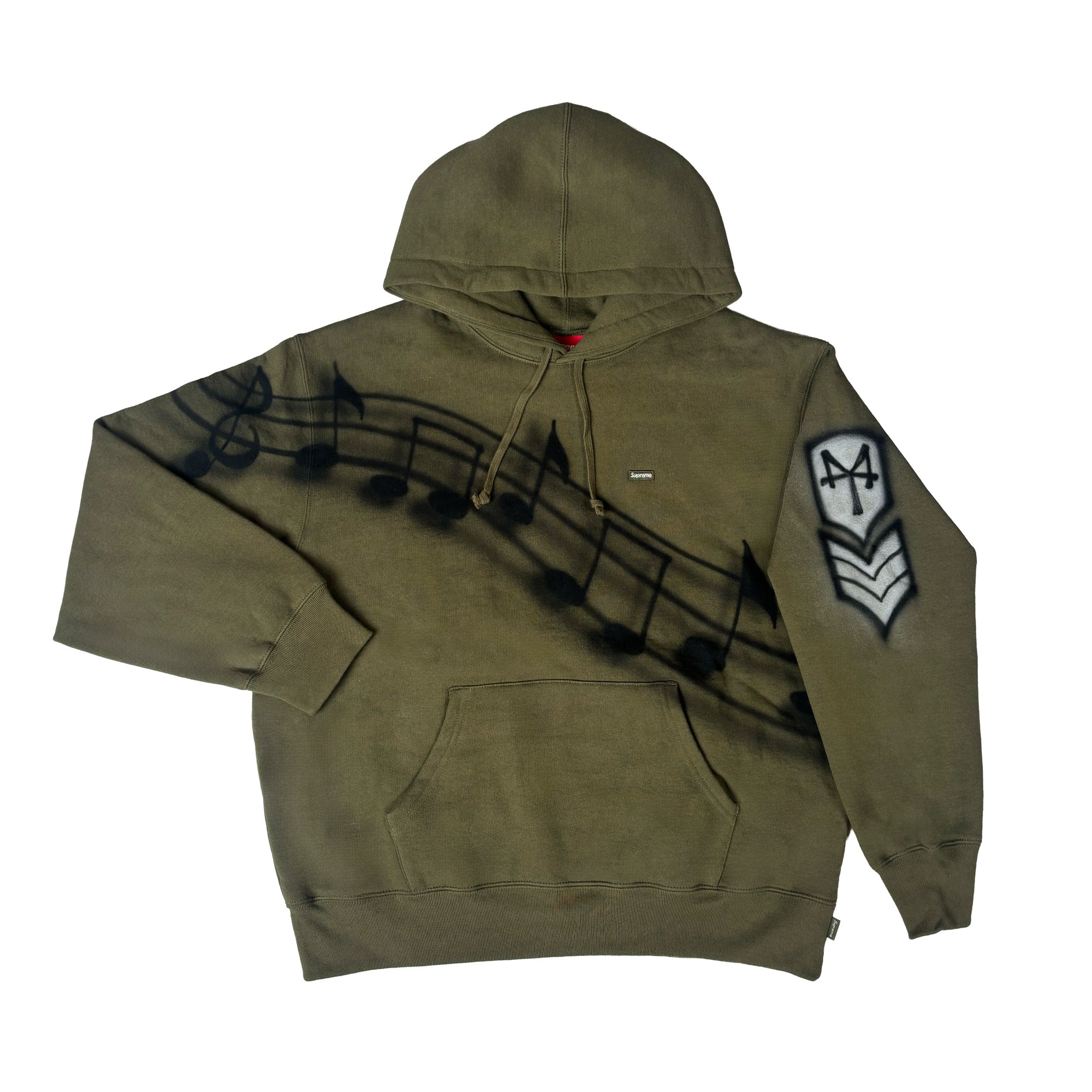 1-of-1 MT airbrushed OLIVE Supreme pullover Hooded Sweatshirt
