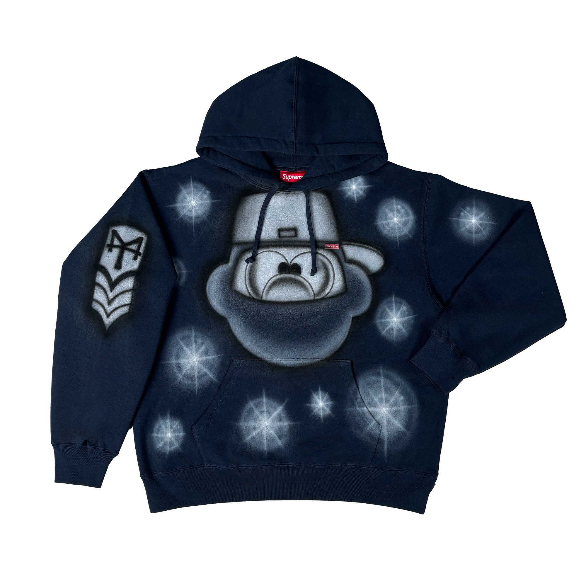 1-of-1 MT airbrushed Supreme navy pullover Hooded Sweatshirt